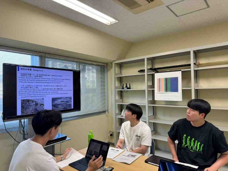 期間中は、コース担当教員による研究紹介、研究ゼミならびに学内外の研究活動へ参加していただきました。2人とも学部3年生ながら、先生方による専門的な話題提供や現場への引率などを通して、社会環境デザイン工学分野について関心を持っていただけた様子を伺えました。本学学生との交流も盛り上がったようで、全北大学校との今後の交流につながることが期待されます。