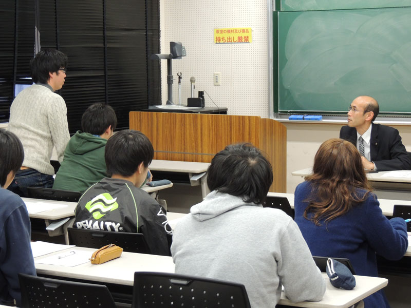講演では、講師の方の職場や業界について、ご自身の体験談などを交えた貴重なお話を聞くことができました。その後、学生から講師の方へ多くの質問が出るなど、学生の就活への意識が高まってきたようです。